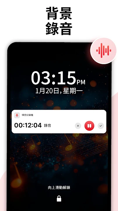 在使用其他应用程序或屏幕关闭时,在后台捕捉免提录音。