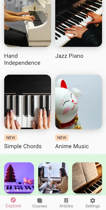 立即下載,透過精心設計的結構化、引人入勝的課程,提升您的鋼琴演奏技巧,實現真正的進步。按照自己的步調練習,並追蹤您的進步,從初學者成長為自信的鋼琴家。