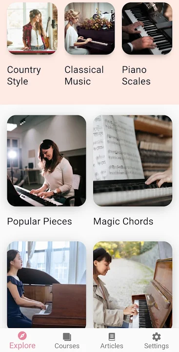 「學習鋼琴」應用程式提供了一些精彩的鋼琴課程,幫助您學習鋼琴。它還提供各種課程,幫助您學習鋼琴音符和和弦。