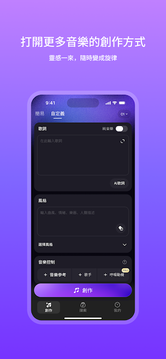 從曲風、情緒到樂器選擇,都能依照你的品味微調,做出真正屬於你的音樂。