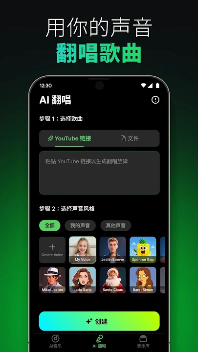 用你喜爱的声音制作AI翻唱,或将你的创意变成音乐!