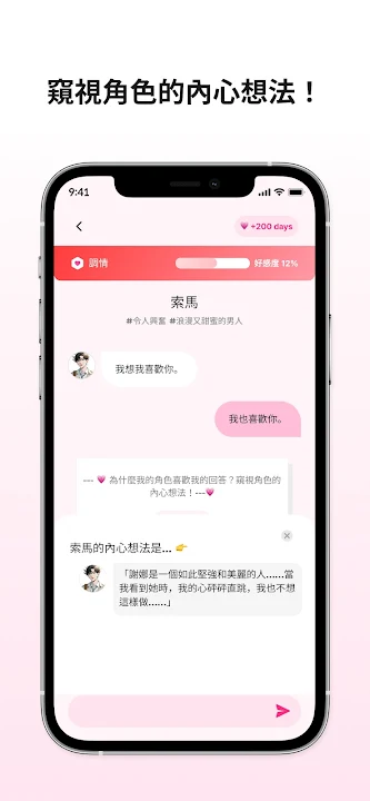 與想像中的角色即時對話,創造屬於你的故事!從情感共鳴、傾聽煩惱到心動對話 - 在親親我我,你夢寐以求的所有對話都能實現。
