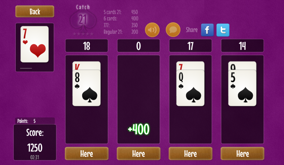 令人上瘾的 Catch 21 二十一点纸牌游戏。匹配任意一列的 21 即可得分。