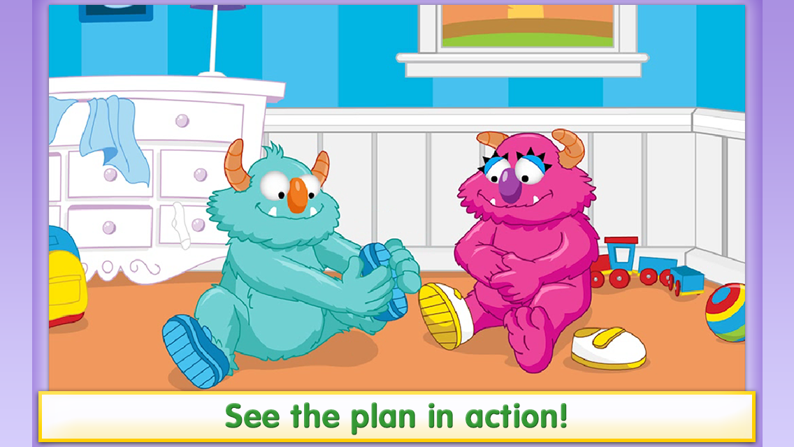 • Personalize encouraging phrases that your child will hear as they help the monster think of a plan*