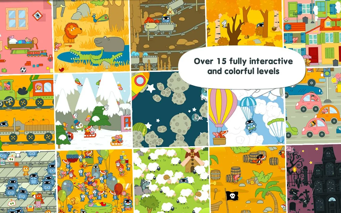 所有的背景都是完全互動的,裝配到攀高的詳細的動畫和有趣的聲音招標多彩的世界。
