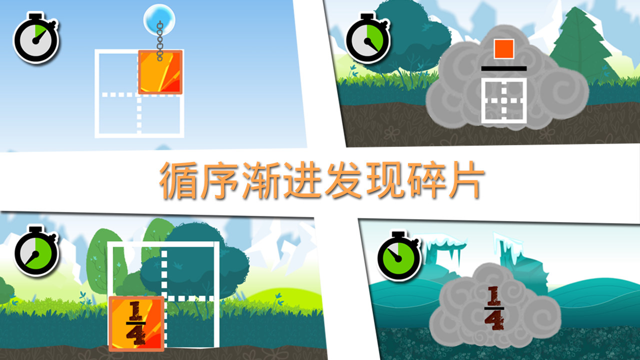 目标:5 到 12 岁的孩子通过切割冰和熔岩以清除猛犸象的道路,揭开分数的奥秘!