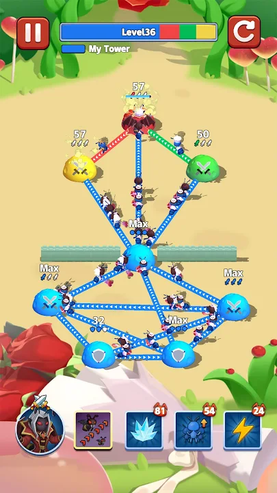 在这款令人欲罢不能的塔防游戏中,你的目标是通过拖动线条连接小型防御塔,部署你的部队,在塔防战中取得胜利。滑动手指断开小型防御塔,阻挡敌方进攻,阻止他们的前进。点击你的蚂蚁英雄,操控他们,释放他们独特的技能攻击敌方防御塔。带领你的军队赢得这场蚂蚁塔防大战!