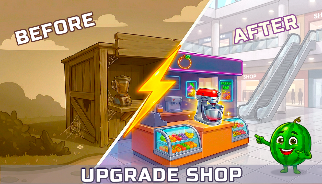🏪 打造你的商业帝国 管理并升级你的店铺。购买速度更快的搅拌机、时尚的柜台,拓展你的业务。将你的小棚屋改造成一家生意兴隆、利润丰厚的果汁吧!