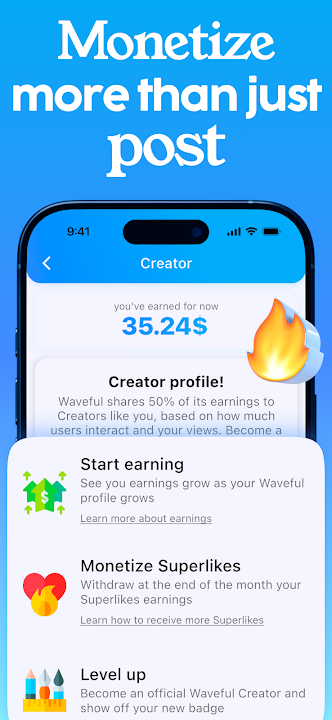 Waveful unique monetisation system allows creators to get support from their fans. Start to monetize from day one.