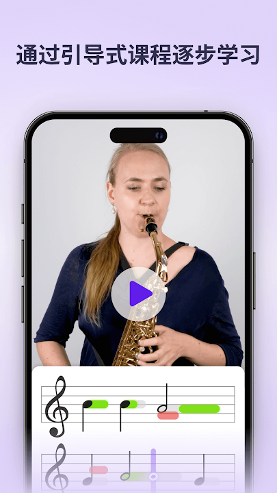 tonestro支持多种乐器,包括小提琴、钢琴、萨克斯风、小号、单簧管、长笛等,为学习和练习歌曲、访问交互式乐谱、使用各种乐器的调音器和节拍器提供全面的课程和工具。