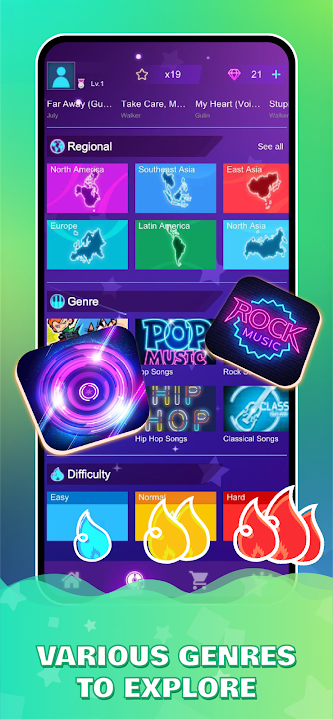 With Dream Tiles Piano, you can perform piano music by simply tapping piano tiles. With ease and fun, melody and rhythm of piano songs flow freely along your finger touch.