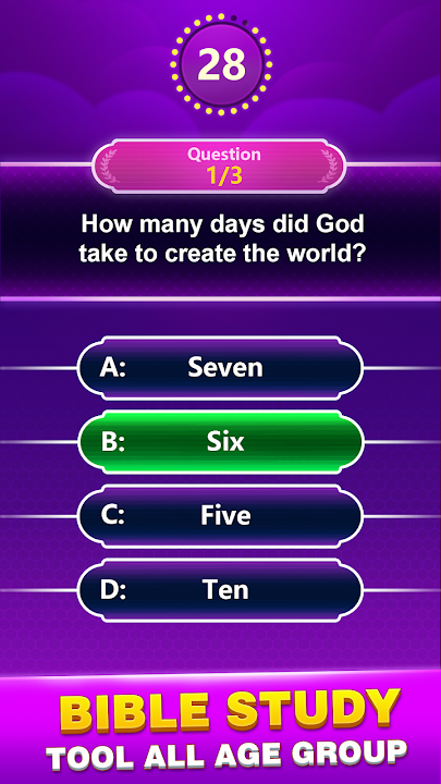 🎮Download Bible Trivia - Word Quiz Game now and train your brain! By fun Bible questions and answers, you’ll not only test your knowledge of the Bible but also compete with players worldwide on the global leaderboard. Whether you’re a beginner or an experienced Bible scholar, this word game offers the perfect blend of entertainment and knowledge. It’s completely free and supports offline, so you can enjoy trivia puzzle anywhere, anytime. We will continue to add more Bible questions and answers so you can keep learning Christianity. Join us now, and as you embark on the journey to becoming a Bible quiz master, you will gain rich rewards and a sense of accomplishment!