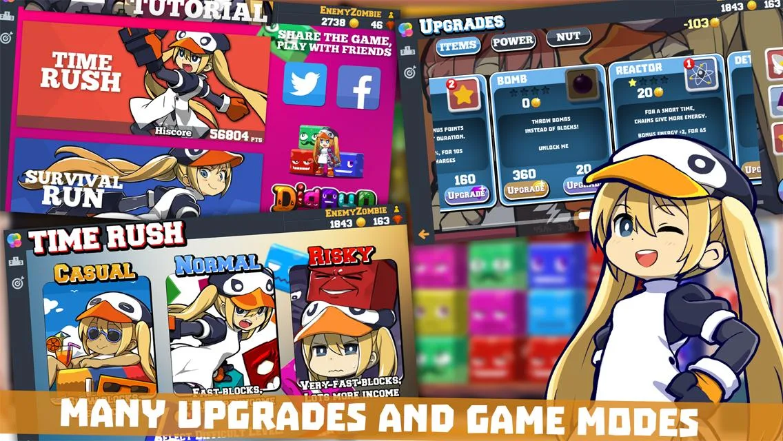Nut's Power Fist, the items and the Super Powers - You can upgrade them all, by spending coins gathered from the destroyed blocks. Keep those upgrades coming - otherwise you won't have a single chance on the highest difficulty.