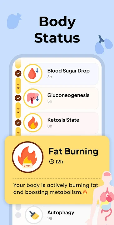 With various fasting plans, fasting tracker is suitable for beginner and experienced, men and women. It guides you through your plan. No need to change your diet, you can easily stick to it. If you are under 18 years old, pregnant or breastfeeding, have health issues or are underweight, please ask your doctor for advice before fasting.