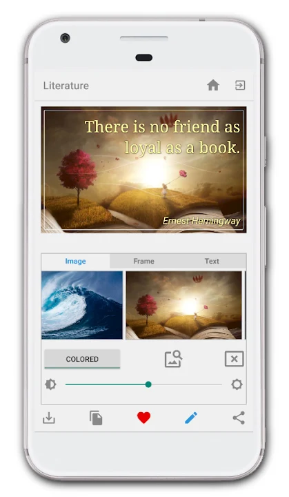 You will be able to exercise or awaken your artistic talents, coloring the phrases, changing the font, the position of the text, the color of the board, among several other customization options. We offer a collection of beautiful images that can be used as a background for quotes and also the option for you to search for a photo from your gallery and leave everything with its unique special touch. With just a few clicks, you'll be able to create real works of art and instantly share on Facebook, Instagram, Whatsapp, Twitter and social networks in general, or save the image on your device to view and share it at another time.