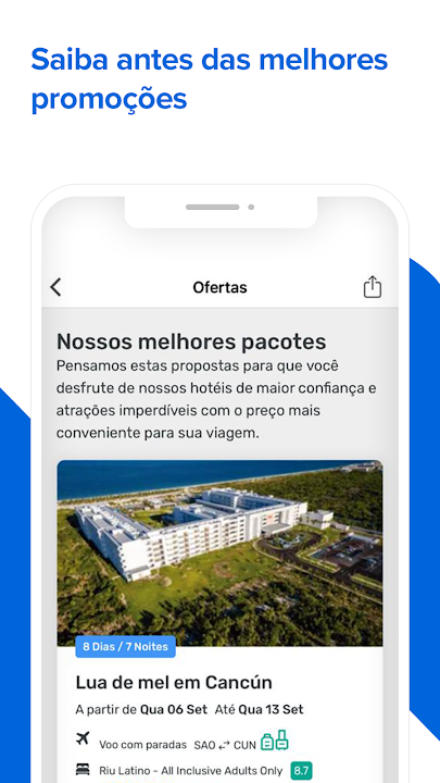 保证在巴西或世界各地旅行时节省开支!在应用程序中搜索机票并查找促销机票。