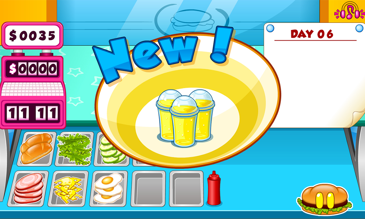 體驗與這個偉大的烹飪比賽跑業務的樂趣。在這裡,你會接受訂單,並創建一個漢堡,將滿足您的所有客戶的需求。每天的工作和學習的技能,成為一個強國食品服務公司。收集你的錢,為你的客戶盡可能快地賺更多的錢過每一天。學習的繩索,並與這個偉大的漢堡烹飪比賽跑業務。