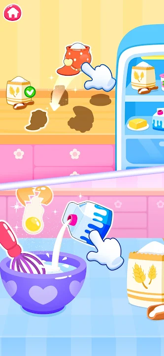 Toddler games have everything you need to add and mix ingredients! Take a bowl and, following the list, put in the necessary products: eggs, butter, milk, flour. Combine the components with a whisk, place the dough in a baking dish and put the baked product in the oven. Create a cool cake design for your dessert with sweet decorations and complete the culinary work of art in baby games!