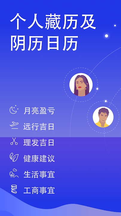免费日历中对理发和远行,以及月相分别有吉日和不吉利的日子。 您可以阅读一般准则并为第二人称添加数据。