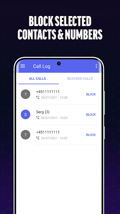 Blacklist unwanted calls by adding the unwanted number to your block list and permanently avoid spam calls. The Call Blocker app provides a user-friendly interface, with a seamless way to add unwanted numbers to your personal blacklist, you can also add numbers that starts with specific digits. So, if you encounter a spammer that managed to slip through, you can swiftly blacklist the number to prevent future disruptions.Block Calls Instantly