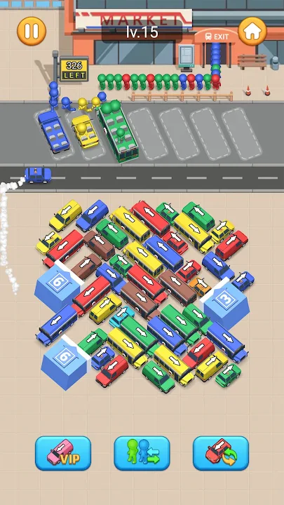 🚃Try your best to not crash into them. You complete a traffic jam level when you move each car out of the parking lot.