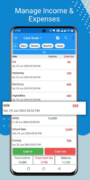 Manage cash balance, daily cash flow. Daily expense manager and cashbook