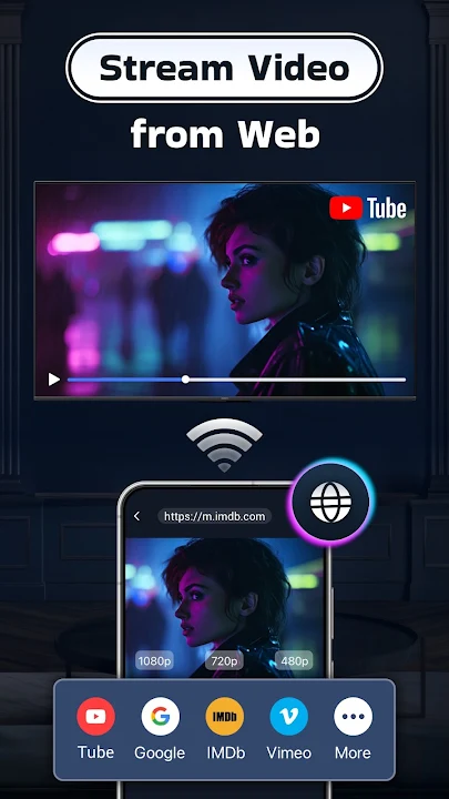 Our app lets youcast media files to all Smart TVs and mirror screen in real time . Whether you want to play mobile games, share photos, or enjoy TV shows, the TV casting feature and screen sharing feature can display your phone's content in stunning Full HD quality on a larger screen.