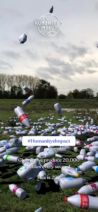 In this app, you can drop one second of global plastic bottles production into your own home... and take a selfie with it!