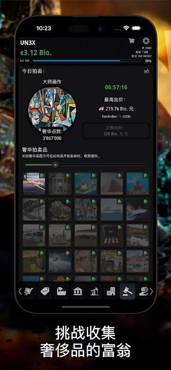 扩展你的总部,并在拍卖会上竞标奢侈品。