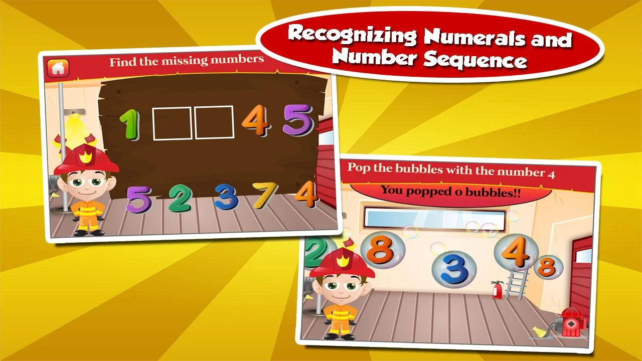 Weeo Weeo Weeo!! Give way to the kids fire truck, fire engine and firefighters siren on their way to kindergarten learning. This firefighting adventure of early childhood developmental activities contains 12 kindergarten learning games is perfect for kids aged 5 and up.