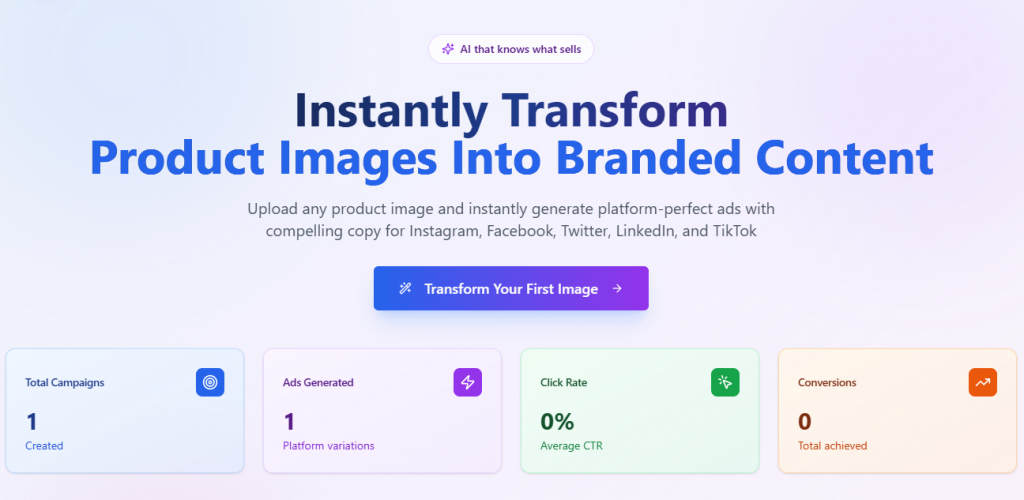 即刻将产品图片转化为品牌内容。上传任何产品图片,即可立即生成适用于 Instagram、Facebook、Twitter、LinkedIn 和 TikTok 的完美广告,并配以引人入胜的文案。