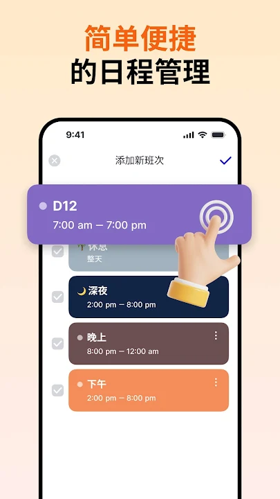 ✅ 自定义轮班模式,一键应用至日历,节省时间。