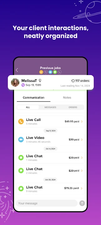 Designed with our trusted advisor network in mind, Purple Advisors makes it easier than ever to manage readings and expand your reach. With Purple Ocean and Purple Garden connecting psychics and clients for over five years, our app empowers you to focus on meaningful, insightful readings while we handle the rest.