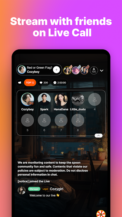 Spoon 致力于创建一个独特且无毒的在线平台,我们的审核团队 24/7 积极监控内容,以确保 Spoon 的安全。