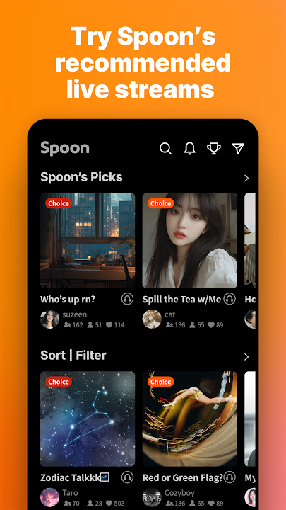 如果您对这些问题中的任何一个回答“是”,那么就该使用 Spoon 了,它是一个纯音频直播和播客平台,深受全球超过 3000 万用户的喜爱。立即寻找您最喜欢的下一个主播。