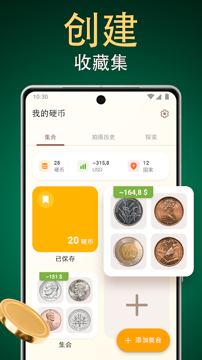 ● 可创建多个硬币收藏集合的选项