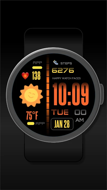 Customizable (pre-selected color combinations) digital Wear OS watch face for your busy day.