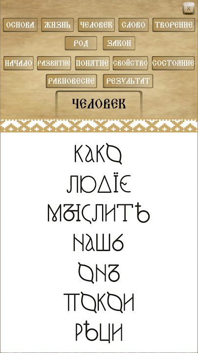 首字母是许多斯拉夫氏族的古老书写形式,斯拉夫氏族的护身符。这是祖先智慧的最大仓库,是传递宇宙过程的深层本质的完美形式,这些过程以其所有生命形式的多样性相互作用。
