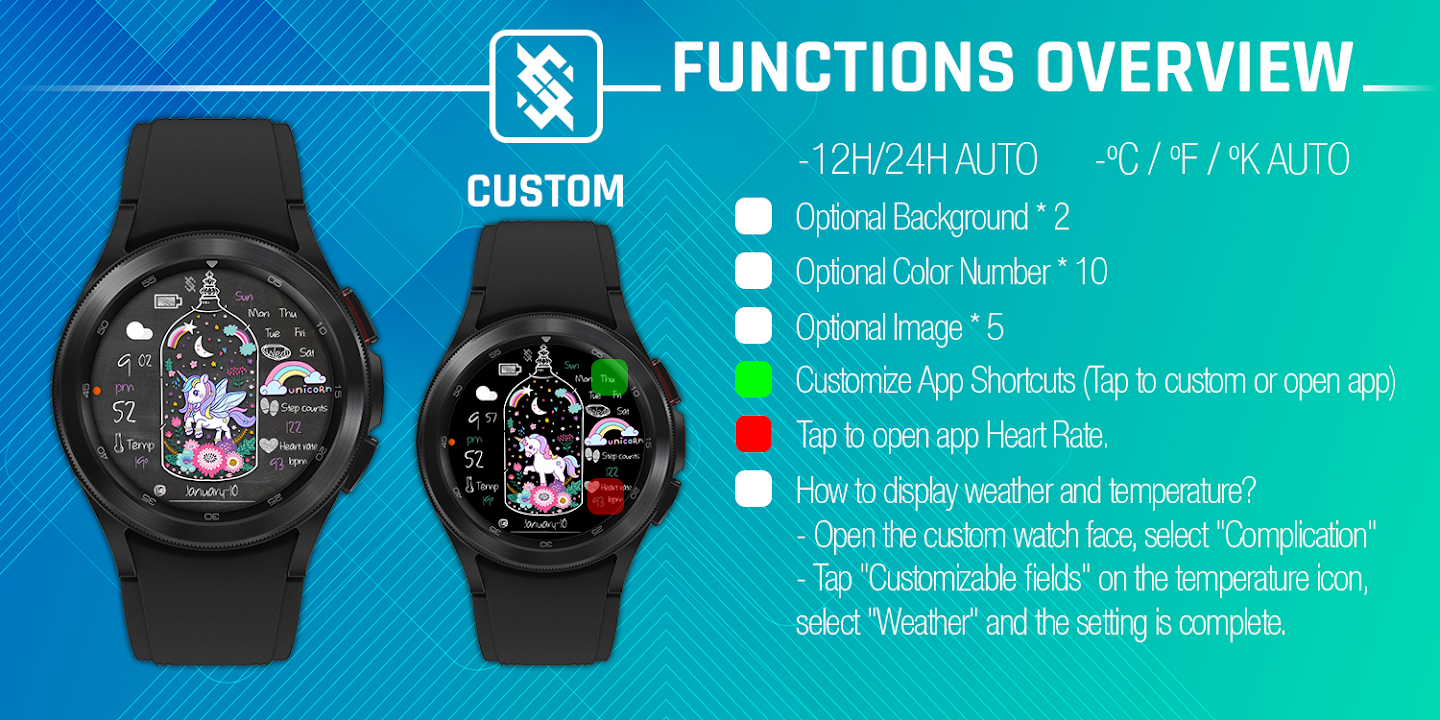 NOTE : Some features may not be available on some watches. This watch face will not apply to square face watches.