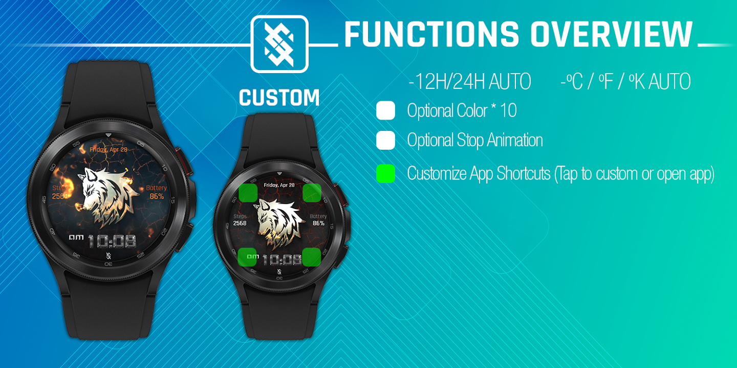 Watch Face Features: (You can see them on the picture description)