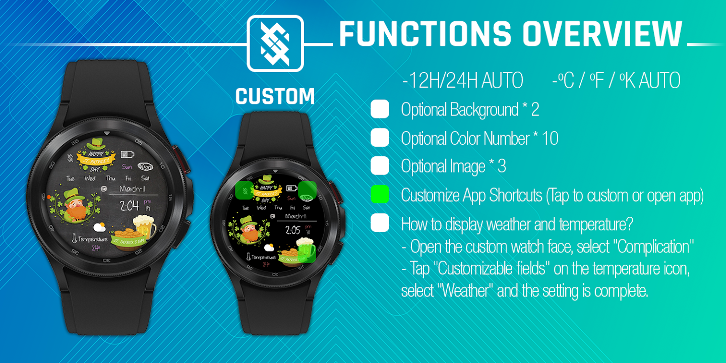 NOTE : Some features may not be available on some watches. This watch face will not apply to square face watches.