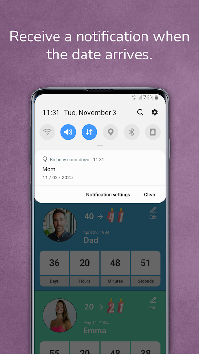 特點: - 插入生日日期 - 自動計算年齡和時間,直到生日 - 根據最近的日期自動排序 - 彩色為每個過生日的選擇 - 非常好用 - 它是免費的!