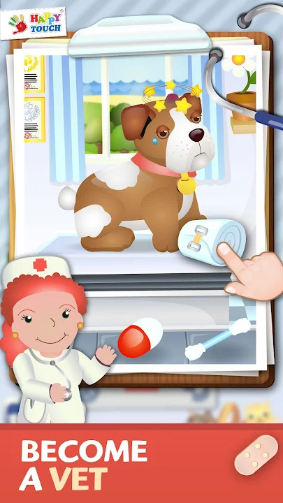 你有没有梦想过在动物医院工作?现在就是你的大好机会!狗狗、猫咪、其他宠物,甚至青蛙、鳄鱼和大象——它们都需要你的帮助!看看它们需要什么,并找出最有效的方法。它们会立刻感觉好起来,并感谢你这位兽医!
