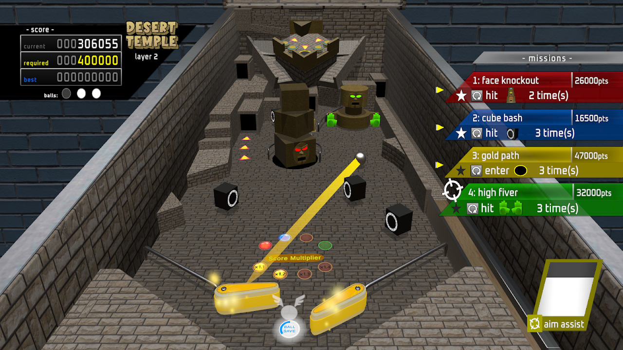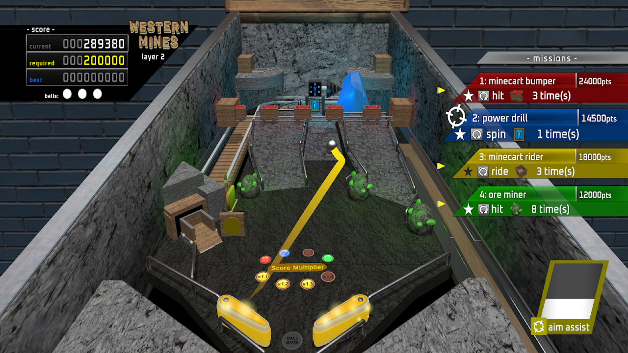 There are 4 tables in total, each with their own visuals and challenges. After completing all the missions on the 1st layer, you gain access to the 2nd layer. Try to score enough points before losing all your balls because once you do, it's game over. Each table will keep your best scores for you to overcome the next time you play. Enjoy this unique way to play pinball!