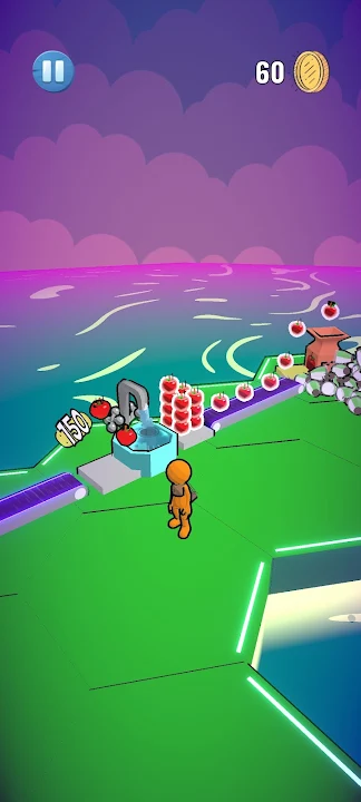從樹上收集水果,清洗並裝瓶。賣果汁賺錢來解鎖充滿新可能性的新六邊形。