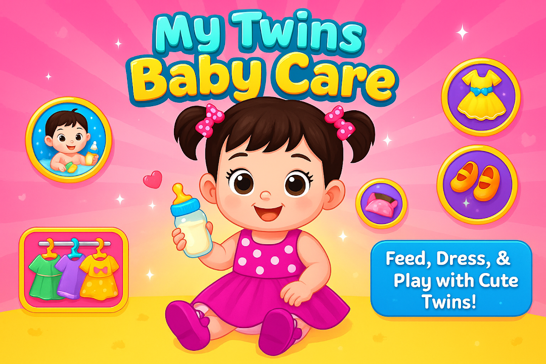 Take care of adorable virtual twin babies in this cute and exciting baby care game! Feed, bathe, dress up, and play with your twin babies while enjoying colorful HD graphics and fun sound effects. Perfect for kids who love baby simulator games, dress up games, and twins care games.