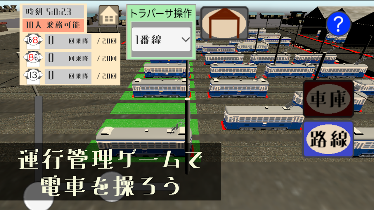 讓我們支持橫濱市電車的運營,將車輛從車庫移至主線並引導車輛從主線返回。在主線上均衡地排列車輛,盡快通關!因事故滯留的列車也出現了!利用以下事實:當您發出進入火車的命令時,系統編號會在火車返回時發生變化,因此您可以發出準確的指令,以避免火車堵塞。