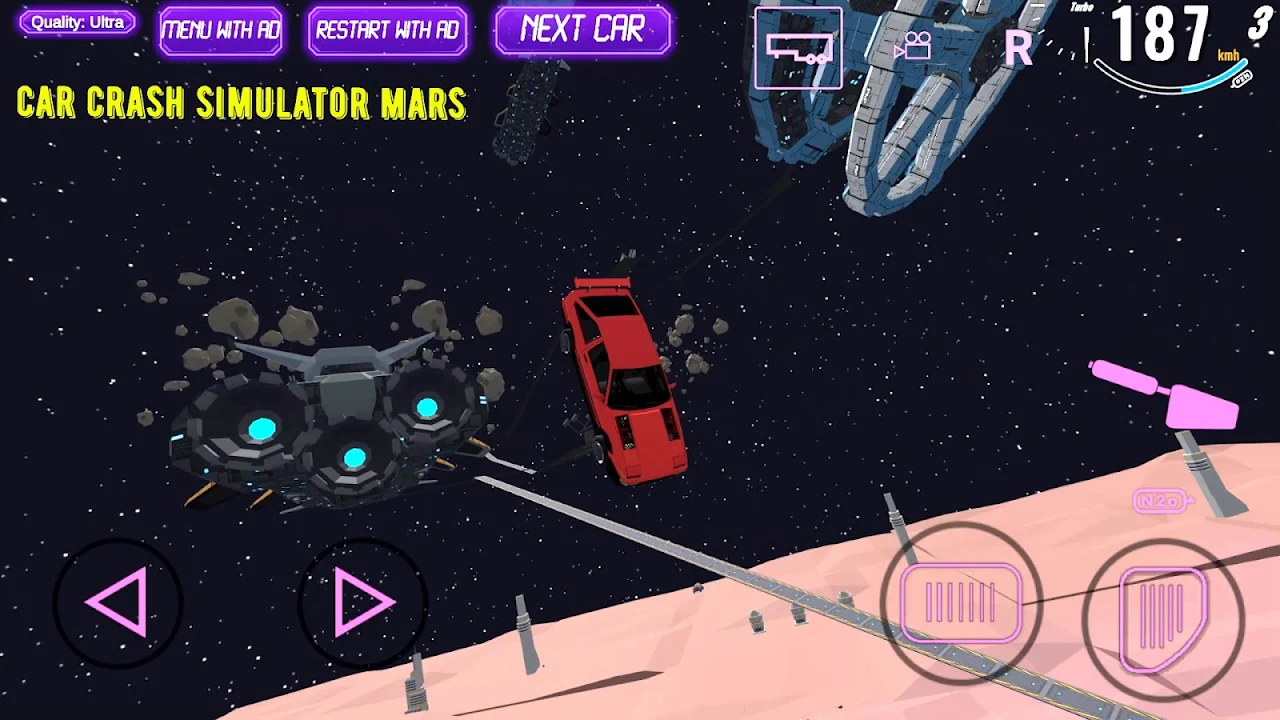 Hittite Games, creator of Car Crash and Real Drive game series, proudly presents its new game Car Crash Simulator Mars to you. If you've ever dreamed of driving and having a car accident on the red planet Mars, you will achieve your dream in Car Crash Simulator Mars. In this game, if you want exactly 46 different kinds of vehicles, you can destroy them by throwing them down on the spaceships in the atmosphere of the planet. In 46 different vehicles, you will find many different types such as trucks, sports cars, jeeps and classic cars. If you want to crash a car with realistic damage on a different planet, download Car Crash Simulator Mars now and enjoy the fun. Hittite Games greets you respectfully.