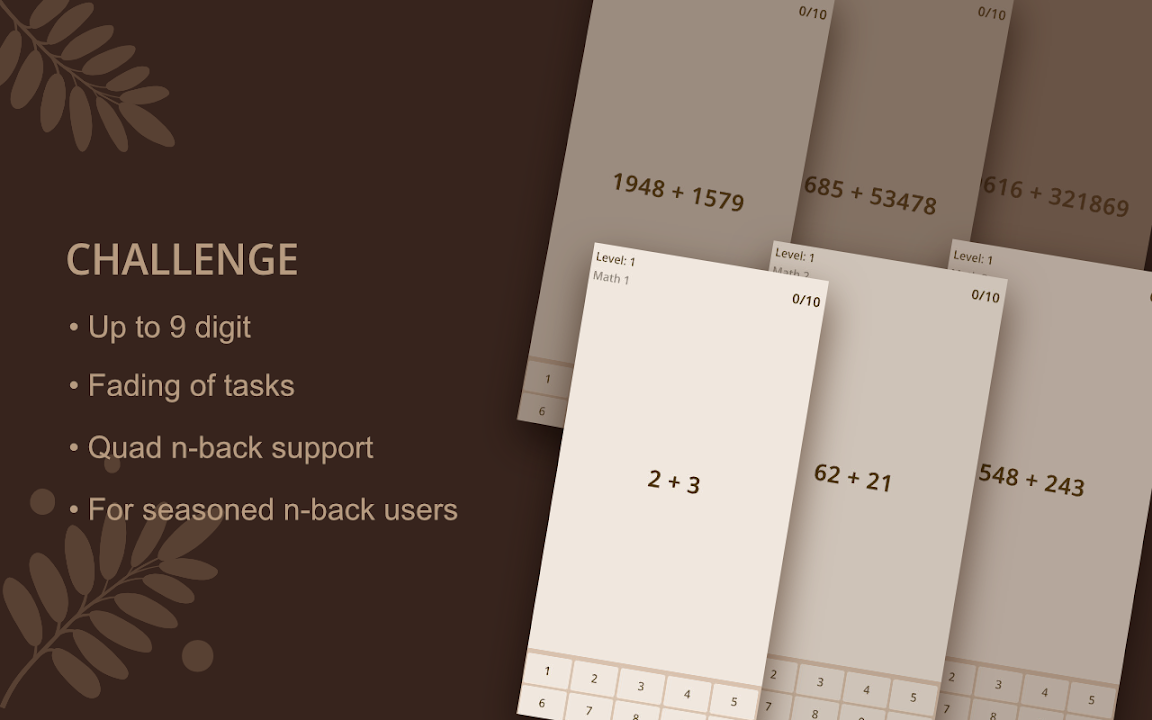 - This is small math n-back app ( it is in single n-back mode and with only plus/minus operators)