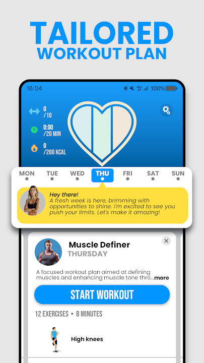 Maximize your fitness results with our app’s weekly workout plan. Each day is mapped out with specific exercises designed by experts, ensuring you get a balanced and effective workout routine. Follow our daily exercise plan and experience professional guidance and tailored workouts that fit your schedule.
